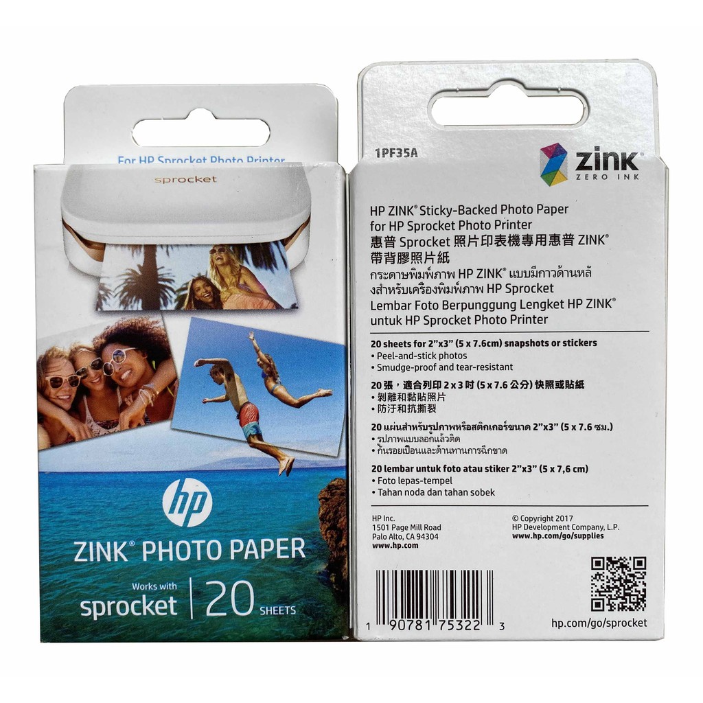 Hp Sprocket Photo Paper Zink Sticky Back 20 Lembar Kertas Foto