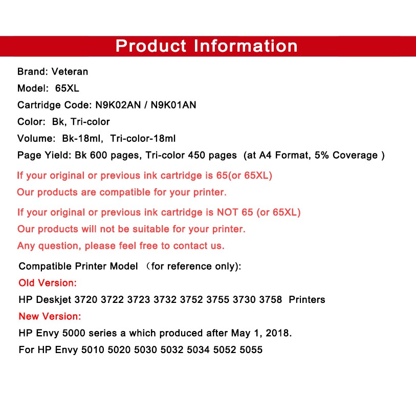 Termurah Veteran 65xl Ink Cartridge Replacement For Hp 65 Xl Hp65