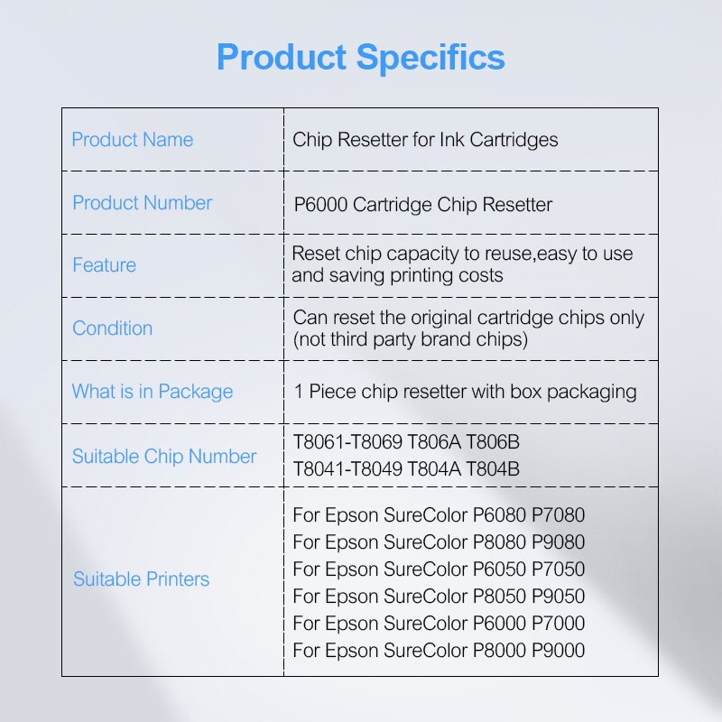 P6000 Cartridge Chip Resetter For Epson Surecolor P6080 P6050